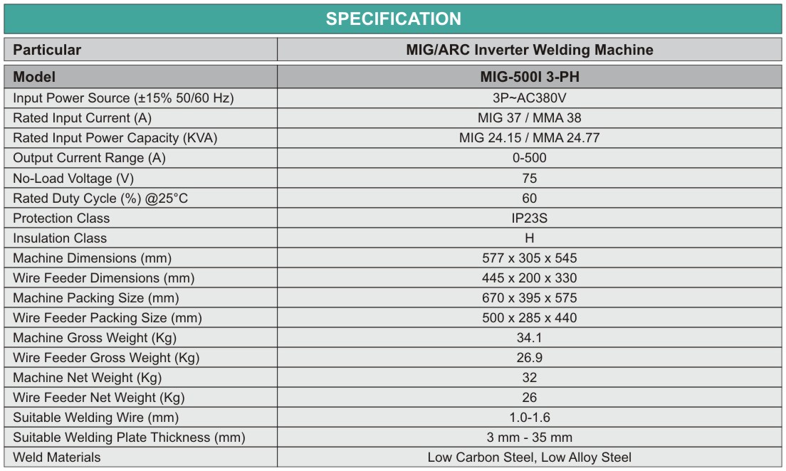 MIG/ARC INVERTER WELDING MACHINE 500I 3-PH
