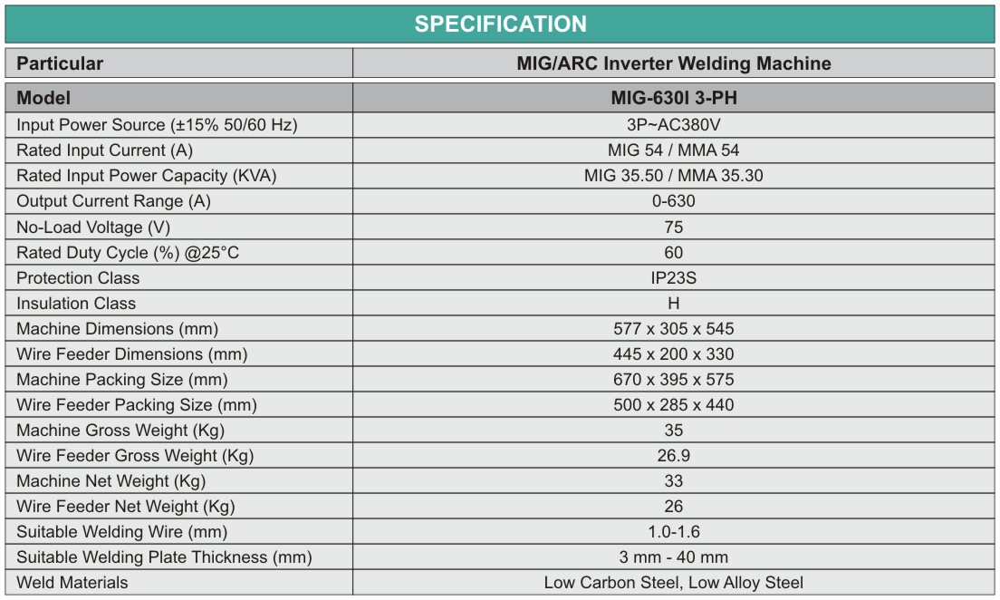MIG/ARC INVERTER WELDING MACHINE 630I 3-PH