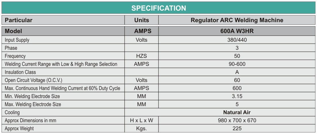 REGULATOR ARC WELDING MACHINE 600A W3HR