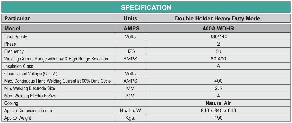 Controller type REGULATOR ARC WELDING MACHINE DOUBLE HOLDER 400A WDHR