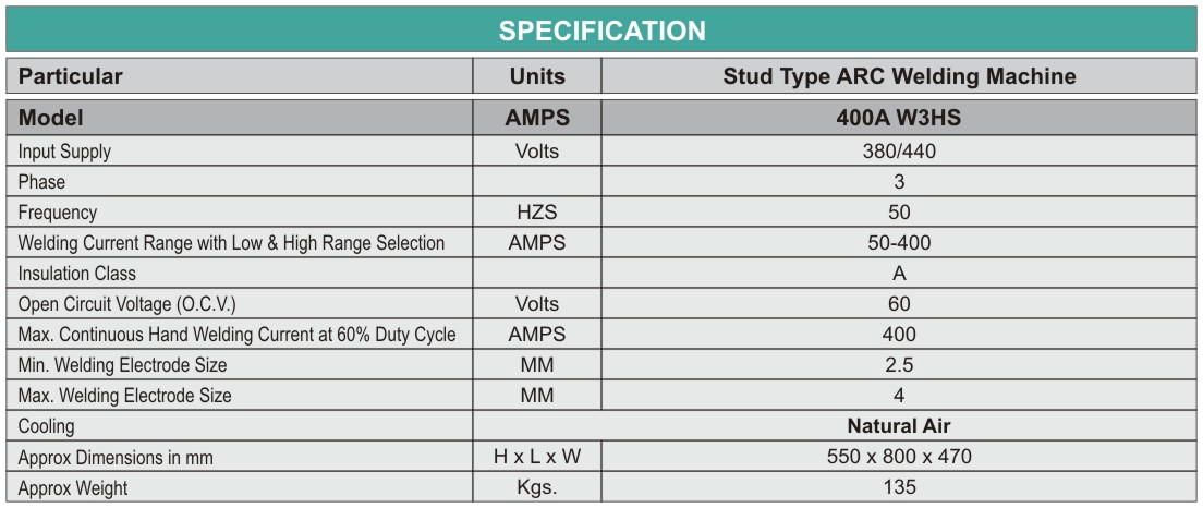 STUD TYPE ARC WELDING MACHINE 400A W3HS
